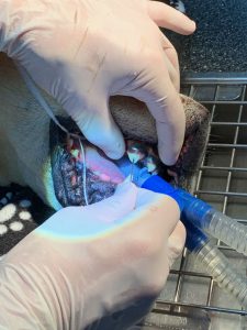 Unfortunately many vets still remove teeth which can be saved. Even though other treatment options are common practice in more advanced veterinary practices. The canine tooth of a dod can be 60mm long and to remove this tooth requires some serious osteotomy (removal of bone to uncover the root).